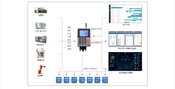 a) 鴻云智能終端-設(shè)備聯(lián)網(wǎng):工人全面管理作業(yè)支持,人機料協(xié)同控制