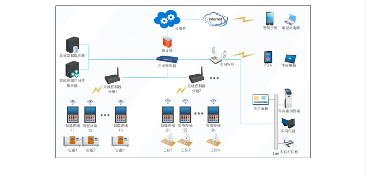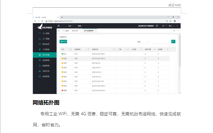 無需機臺布線,通過專用工業(yè)WIFI實現(xiàn)無線聯(lián)網(wǎng),穩(wěn)定可靠,相比4G網(wǎng)絡(luò)節(jié)省費用,比一般WIFI穩(wěn)定可靠。