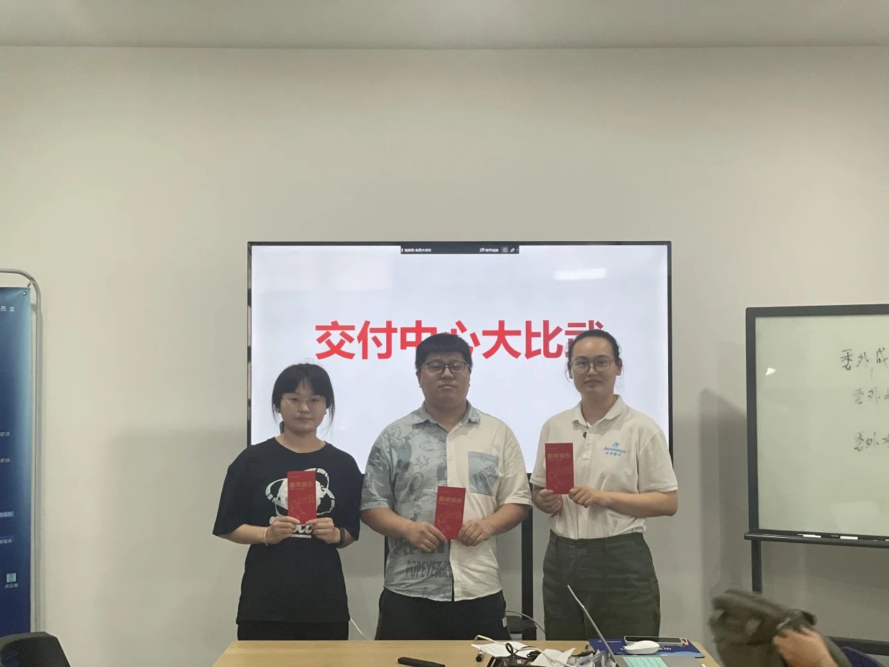 比武從上午8點(diǎn)一直持續(xù)到下午4點(diǎn),經(jīng)過(guò)8小時(shí)的角逐,最終產(chǎn)生了得分最高的三名小伙伴,他們的技術(shù)過(guò)硬,積極向上,由我們的唐于老師給各位頒發(fā)紅包。交付中心的伙伴們,讓我們一起奔跑追上未來(lái),共創(chuàng)交付中心更好的明天。